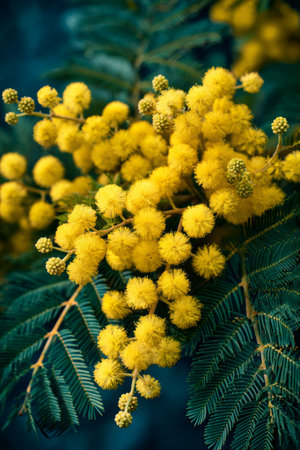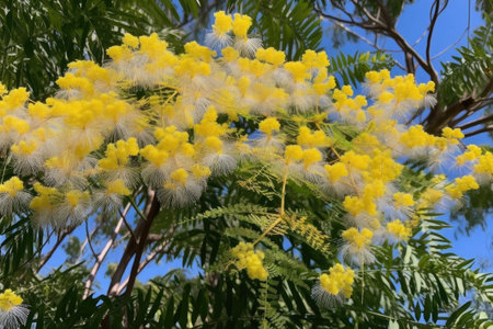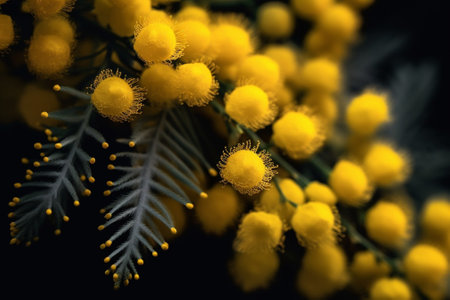Generative AI : Silver wattle yellow flowers blooming