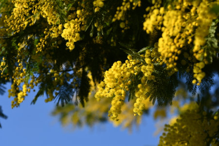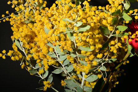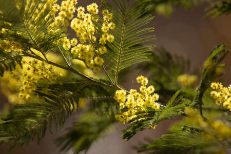 Acacia dealbata silver wattle yellow flowers blooming close up