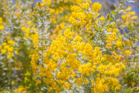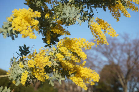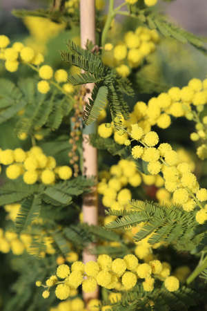 Mimosa flowers in full bloom with beautiful yellow