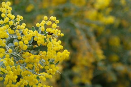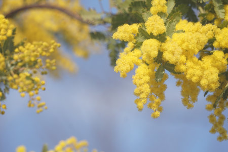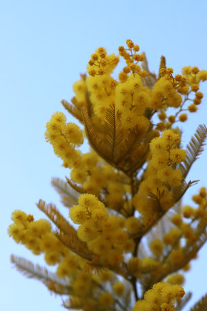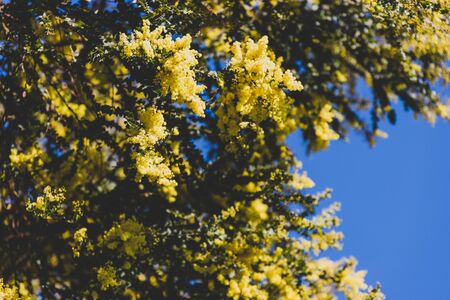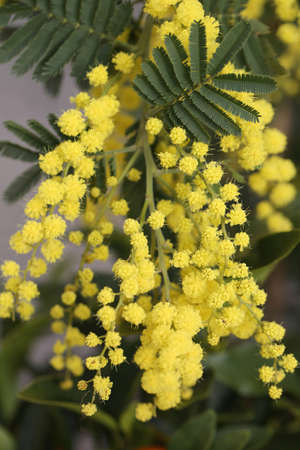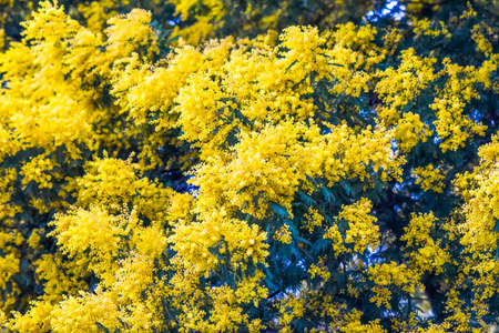 beautiful mimosa branches outdoor, yellow flowers for womens day or easter