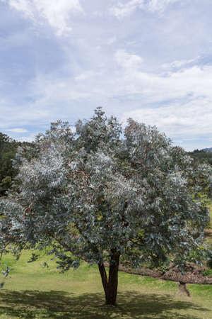 Cootamundra wattle (Acacia baileyama). Fabaceae evergreen tree native to Australia. It has beautiful silver-grey leaves and yellow flowers in spring.