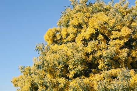Flowering mimosa tree. The flowery branch of mimosa is offered to women on March 8th for the International Women's Day.