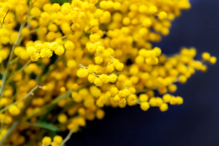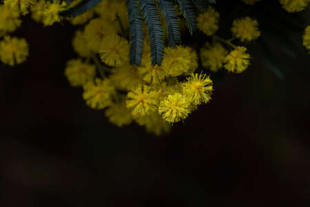 Bush of yellow Mimosa on a dark background
