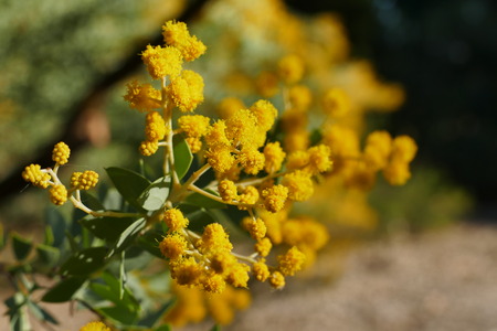 native Australian wattle tree in bloom with the typical round yellow flowers, the plant is also symbol of the country