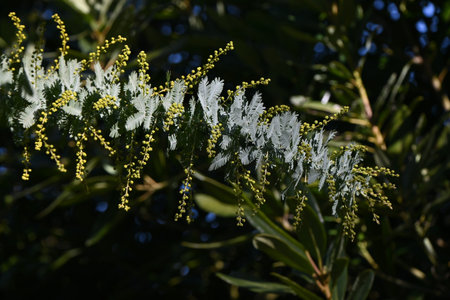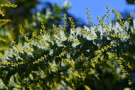 Acacia dealbata silver wattle yellow flowers blooming