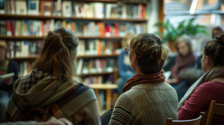 A hazy gathering of readers lost in passionate discussions about plot twists and character developments
