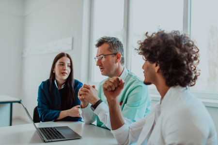 A dedicated group of doctors and medical nurses attentively listens to their colleagues work plan in a healthcare facility, fostering collaboration and ensuring high-quality patient care