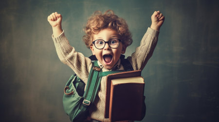 schoolboy wearing glasses, symbolizing the joy of learning and achievement, education concept.