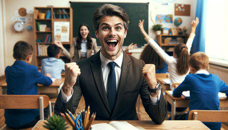 Happy school students, great moments and memories, classroom, enthusiasm for learning, celebrating the journey of education filled with laughter and friendship