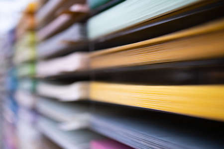 stack of magazines and files with selective focus over soft background with copy space