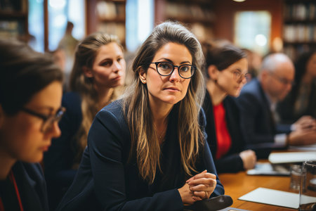 A legal team presenting a case at the International Court of Justice, focused on upholding the rights of individuals facing persecution