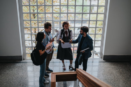 Editorial image capturing a diverse group of high school or college students engaged in an academic