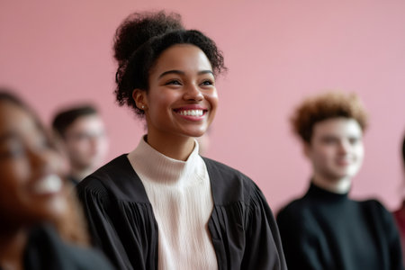 Proud graduate smiles in formal attire, created with AI