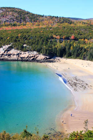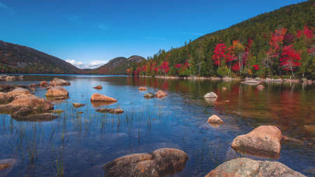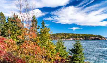 The natural beauty of the Acadia National Park in Bar Harbor (Maine, USA) during the indian summer at the waterfront