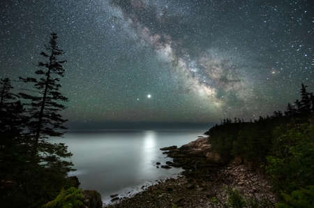 Milky way over the sea. Starry sky. Long exposure photograph.