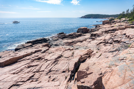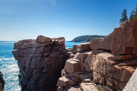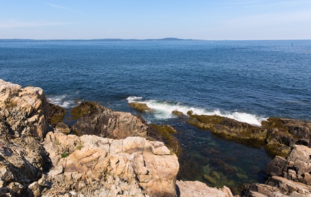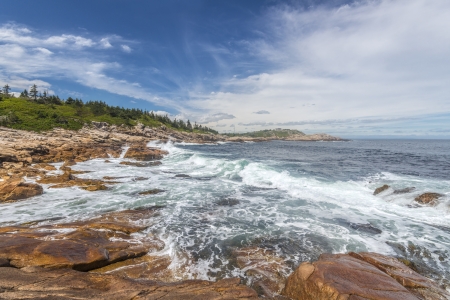 The rocky coast in Acadia National Park, Maine near Thunder Hole in the summer.