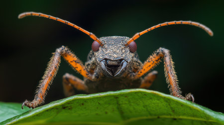 Macro shot of a beetle's head, close-up.