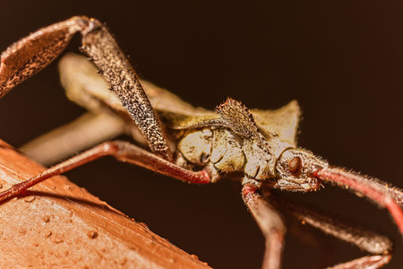brown tree bug with compound eyes under hight magnification