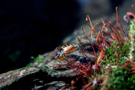 Beetle on a rock in the wild. Wildlife scene from nature.