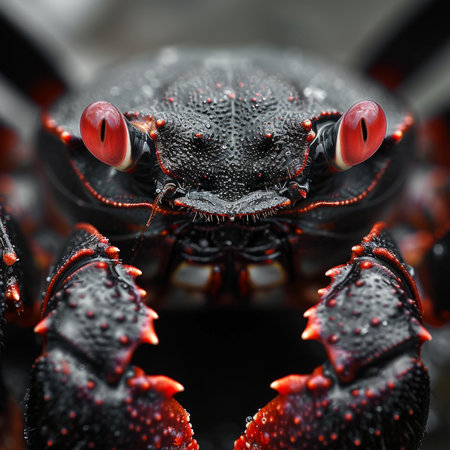 Detailed macro shot of a giant water bug, showcasing its intricate features and textures against a dark backdrop.