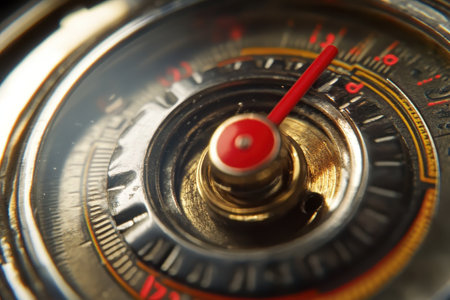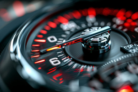Futuristic gauge with red needle displaying speed and precision. That the image is generated using AI.