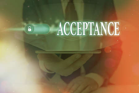 Handwriting text Acceptance. Conceptual photo when you agree to take something officially or act of taking it Graphics padlock for web data information security application system