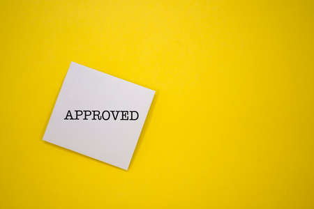 Approved text on a white sheet of paper on a yellow background.