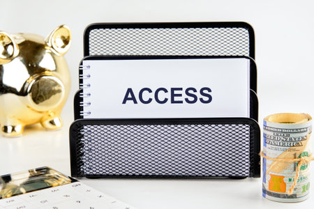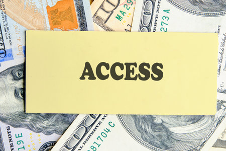 ACCESS text written on yellow paper on the background of banknotes. Business and accessible concept. Copy space
