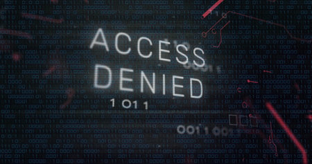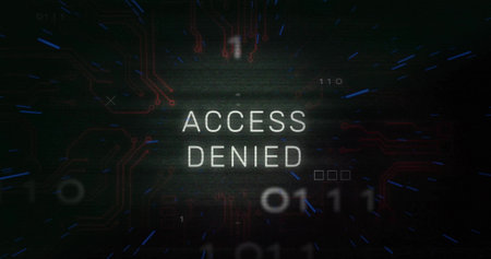 Access denied text over binary code and circuit board image. Cybersecurity, hacking, protection, digital, technology, data