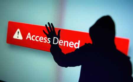 A shadow hacker in front of a computer screen displaying Access Denied in red text, representing cybersecurity threats and hacking.