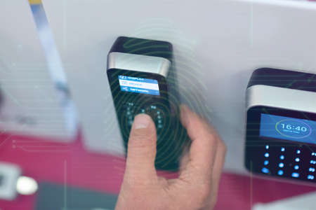 Fingerprint scan provides security access with biometrics identification. Business Technology Safety Internet Concept.