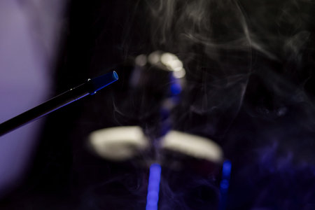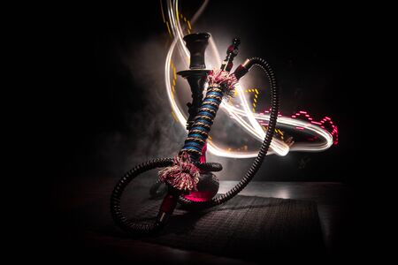 Hookah with fume on dark background