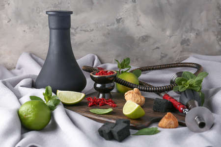 Shisha parts, tobacco and lemons close up