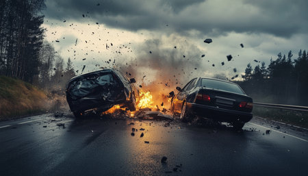 Collision on the road capturing the impact of a car accident and insurance implications