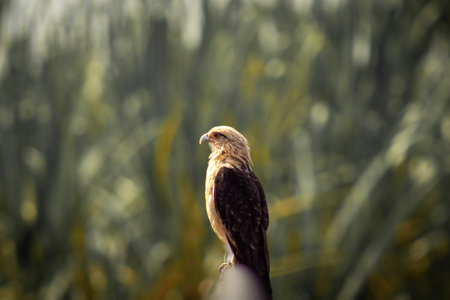 Predatory falcon-hunter, looking for prey from the eyes of a kite