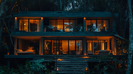 Luxury house in the garden at night with beautiful light.