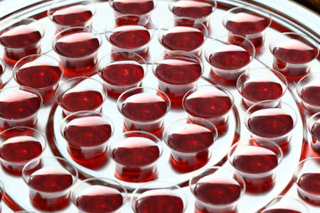 Communion plate with red wine