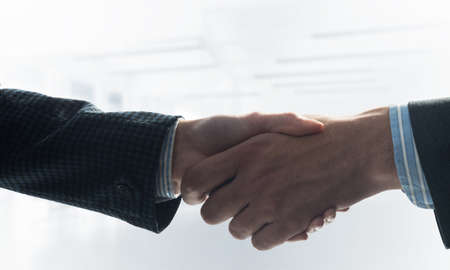 Business partnership meeting concept.photo businessmans handshake. Successful businessmen handshaking after perfect deal,black and white