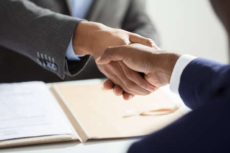 Close-up Of Businessperson Shaking Hand With Candidate At Workplace