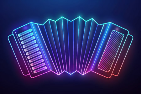 A beautifully designed accordion is illuminated with an array of colorful lights, capturing the essence of music and celebration. This intricate instrument invites listeners to immerse themselves in its rich tones while surrounded by a warm and inviting ambiance.