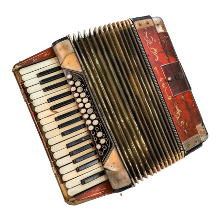 Isolated image of an old, well worn accordion, showcasing its timeless design