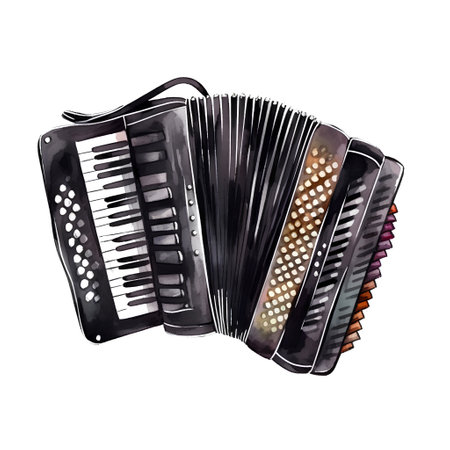 Musical instruments accordion. Watercolor hand drawn illustration on white background