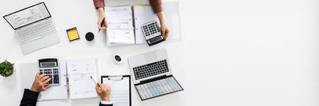 Auditors Calculating Corporate Invoicing And Tax Budget