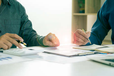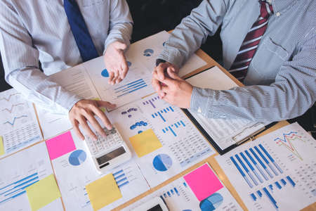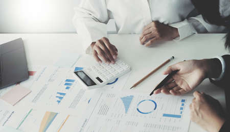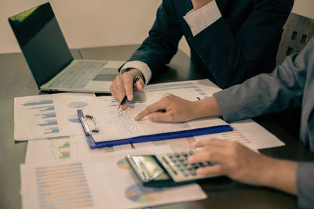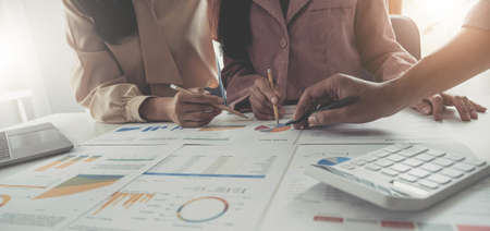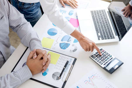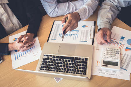 business people adviser meeting to analyze and discuss the situation on the financial report in the meeting room.Investment Consultant,Financial Consultant,Financial advisor and accounting concept.