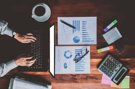 Professional businessman working at workplace with report, Doing finance on laptop, document graph and analysis business strategy to development profit.