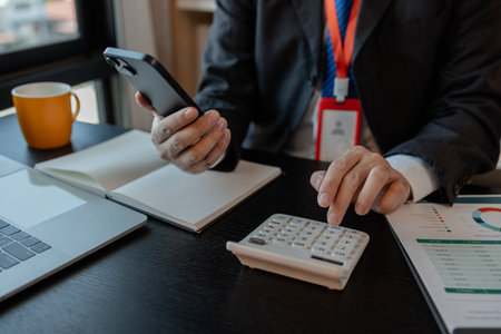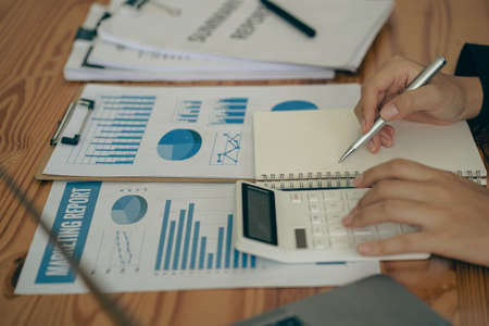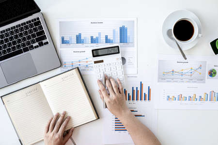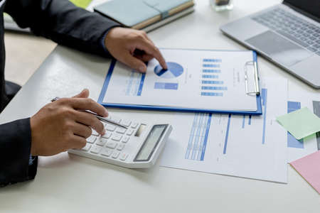 The businessman hand sits at their desks and calculates financial graphs showing the results of their investments planning the process of successful business growth.