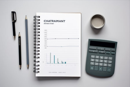 Crucial Elements: Insights on a Grey Canvas - Symbolism of Notebook, Pen, Calculator, and Chart in AR 3:2