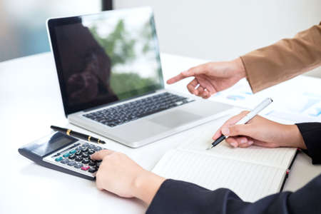A group of business accountant working together, checking and analysing their financial and accounts sales report. cropped