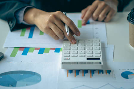 The businessman hand sits at their desks and calculates financial graphs showing the results of their investments planning the process of successful business growth.