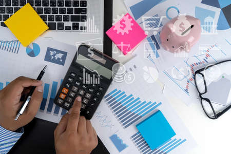 businessman working using a calculator finance accounting concept achievement to balance man assistant accounting